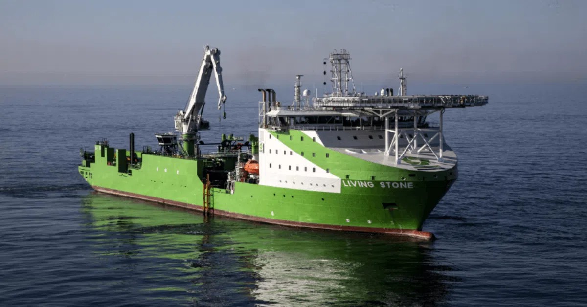 Это многоцелевое судно не только прокладывает кабели, но и занимается морскими перевозками, прокладкой траншей и установкой горных пород